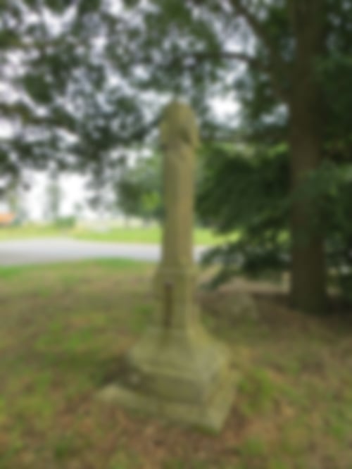 An dem Pfeiler sind zwei normannische oder sogenannte gotische Schilde an den gegenüberliegenden Seiten ausgeprägt. Sie tragen die Wappenbilder des Johann von Solms-Ottenstein. Oberhalb der Schilde sind Bruchstellen, die vermuten lassen, dass dort die Balken eines lateinischen Kreuzes ansetzten. Auf dem Schaft ist eine lateinische Inschrift erkennbar. Die Schriftzusammenhänge sind nach Verwitterung größtenteils unleserlich.